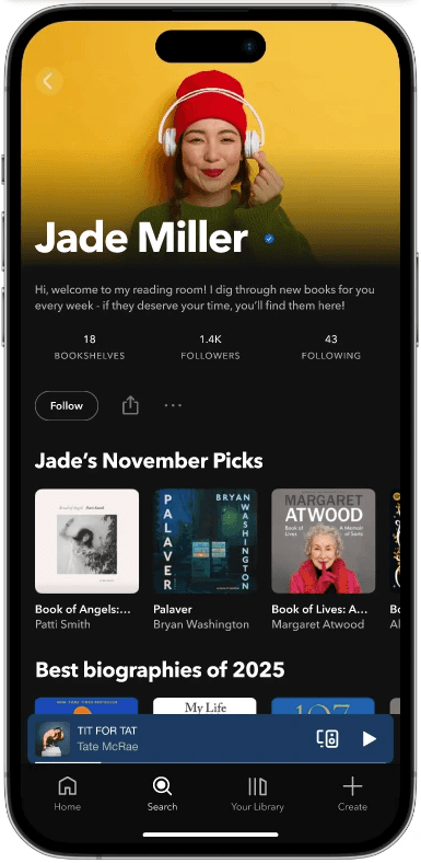 We make it easy to follow people whose taste resonates, so your audiobook picks feel personal, not random.