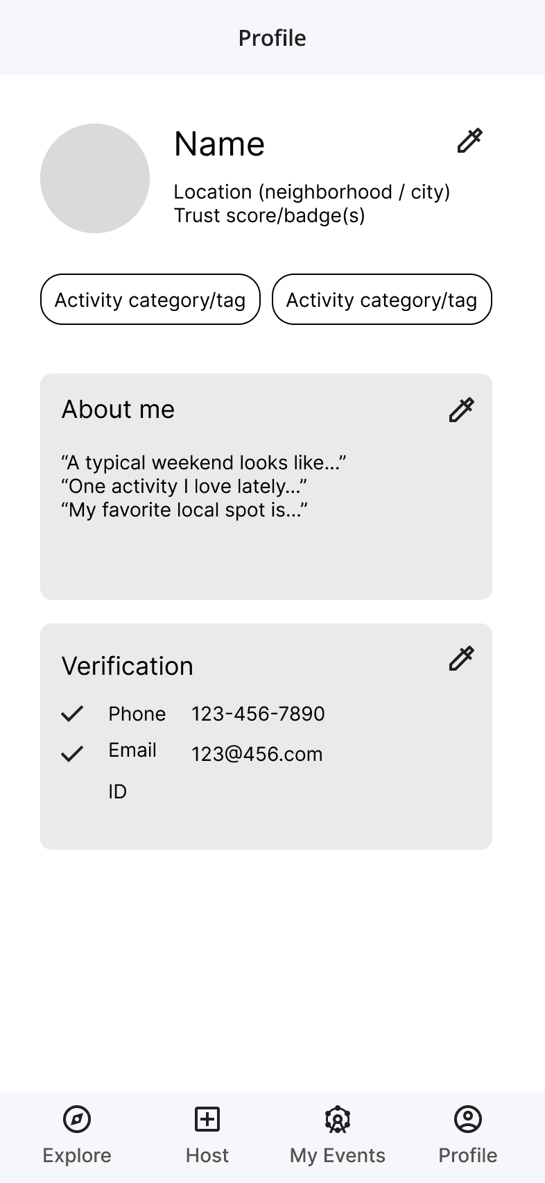Verification badges for safety checks and preference setup help surface activities that feel right, while setting clear expectations for everyone involved.