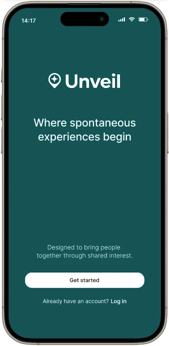 We defined Unveil as an activity-first social platform designed to make meeting new people feel natural, not forced. By centering real activities instead of profiles and endless planning, Unveil helps people connect around shared interests in the moment, without the friction of over-organizing.